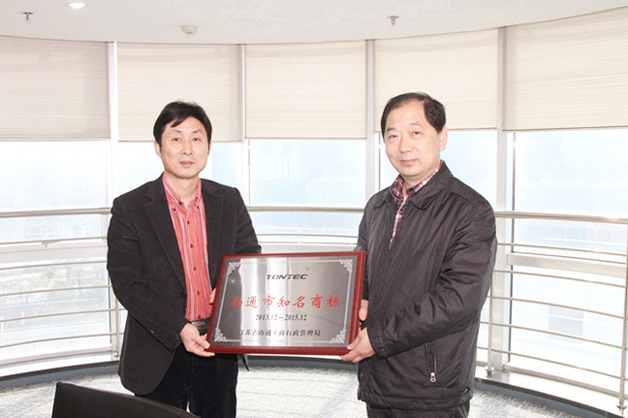 3月18日下午,港閘區工商局朱局長一行5人蒞臨公司,進行“南通市知名商標”的授牌,并就2014年該公司申報“江蘇省著名商標”的相關事宜進行現場指導。南通科技總經理沈春華、副總經理儲健參加授牌儀式。(南通科技供稿)