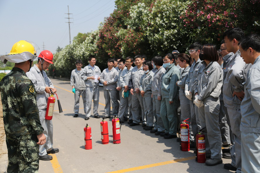 5月22日下午,南通江山農(nóng)藥化工股份有限公司直屬團(tuán)支部在公司消防隊(duì)舉辦了消防技能比武活動,此次活動包括手持滅火器滅火、消防水帶使用、消防服及空呼器的穿戴。來自公司研究院、業(yè)務(wù)發(fā)展部、營銷中心、綜合管理部等6個部門,共計(jì)28名青年員工參加了活動。活動開展之前,28名參賽選手通過抽簽方式分成兩組。接著公司消防隊(duì)長介紹了滅火器的種類、滅火器的使用方法以及比賽規(guī)則。
