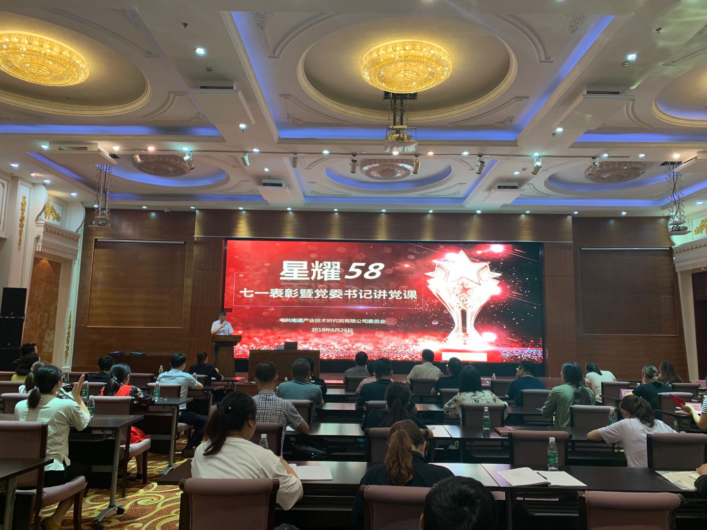 6月26日,為表彰先進、弘揚正氣,做好“不忘初心,牢記使命”主題教育活動,在建黨98周年,建國70周年之際,南通產業技術研究院隆重舉辦了2019年度“七一”表彰大會暨黨委書記上黨課活動。產研院、先進院全體人員、園區企業部分黨員代表參加了會議。