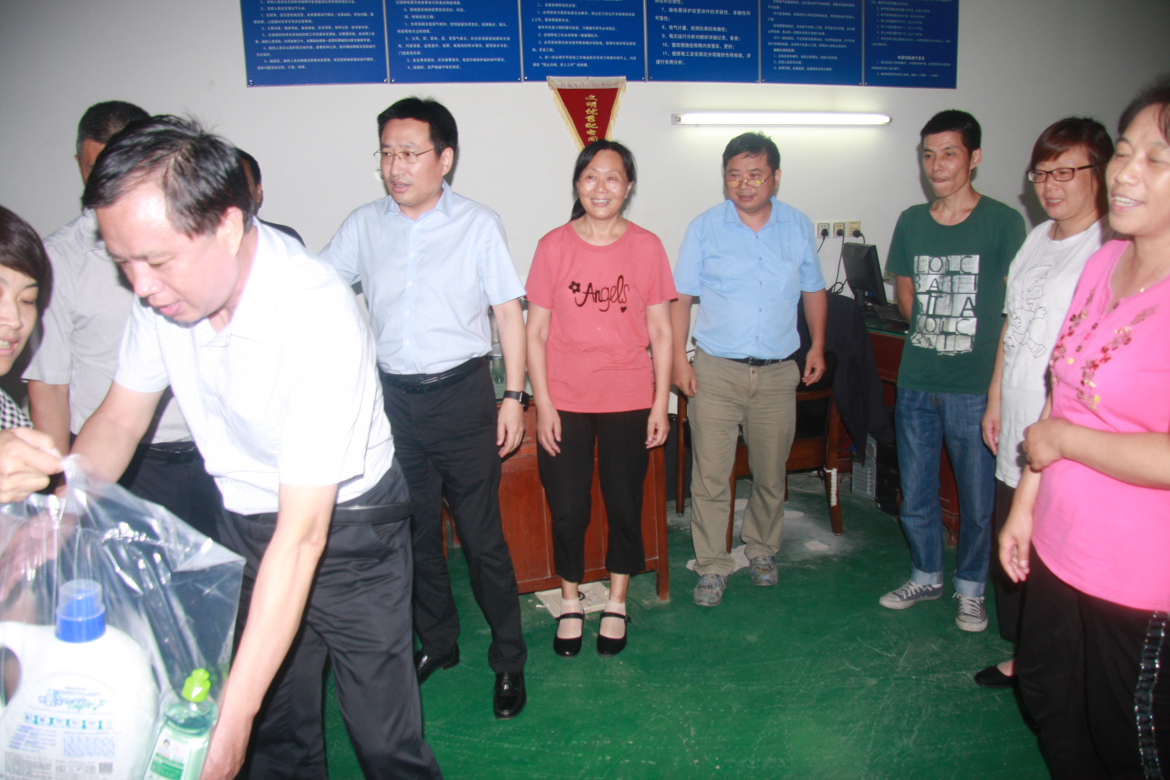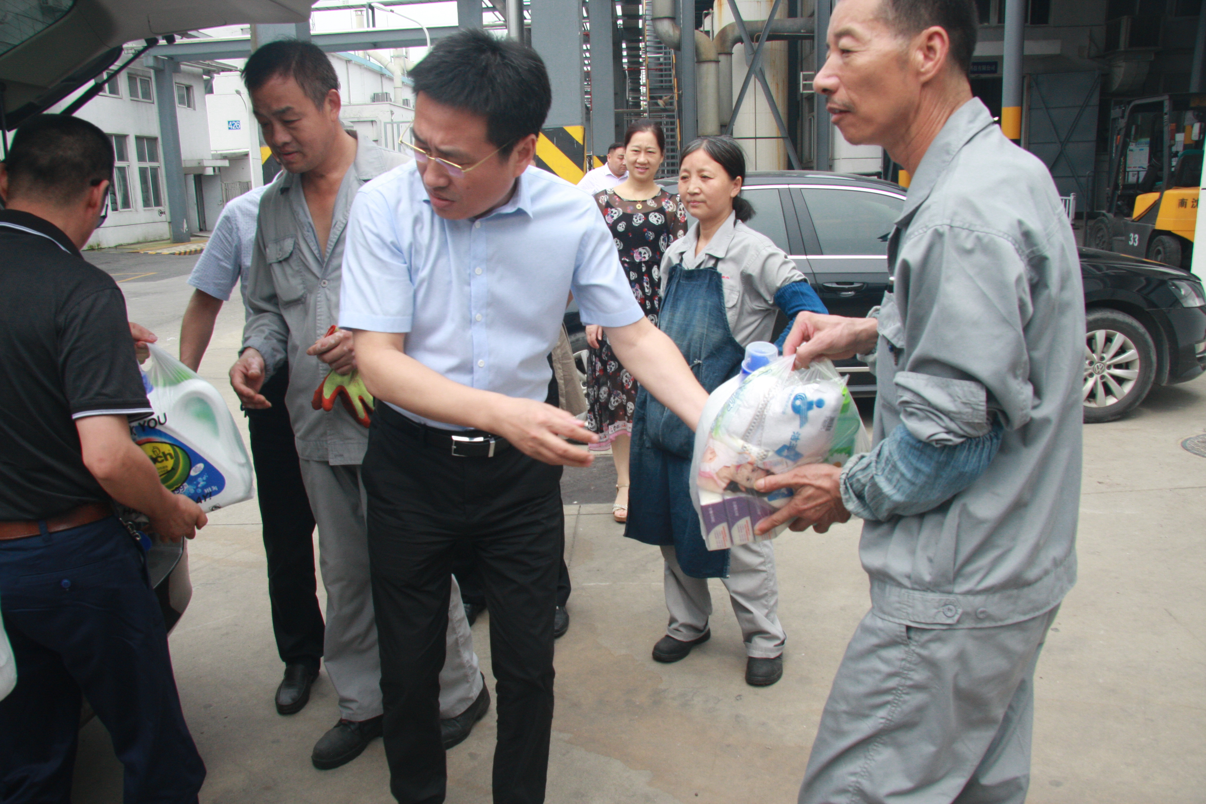 慰問組一行先后到江山農化生產車間、興盛木業制造廠房、以及公司管理的三個園區:軟件園、飛越百度文化廣場、石化園區,分別給一線生產車間職工、園區一線工作人員送去防暑用品,并詳細了解了一線職工工作環境和生活情況,對他們辛勤的付出表示感謝,叮囑大家在做好工作的同時,一定要注意防暑,確保安全,保重身體。
