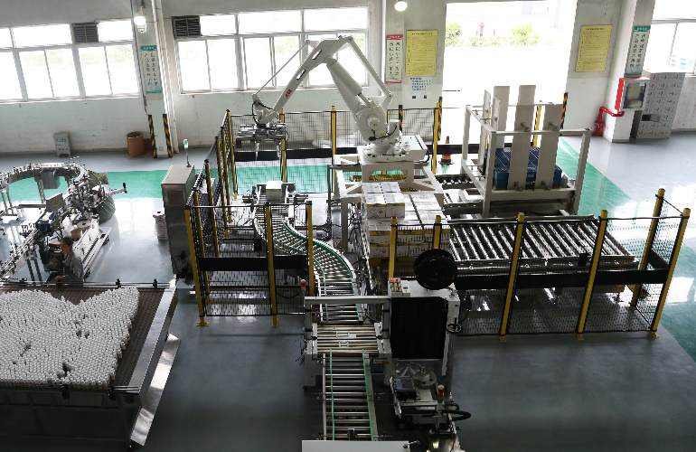 隨著碼垛機器人將首托最后一箱成品放置到位,標志著南沈科技首條殺蟲劑乳油智能包裝線成功投產。 常規的智能包裝線的建設周期一般為4個月,要在3個月內完成非標智能線的設計、制造、安裝及廠房的改造任務具有一定的挑戰。公司副總經理、南沈科技總經理王利在項目組的啟動會議中要求:該包裝線要堅持高標準、高起點,在設備選型上要做好調研、論證;產線布局上要結合現場的管理定置要求,從包材流、生產線布置、物流通道、人員進出通道等統籌考慮,科學布局;工程進度上要結合現有生產任務交期及設備安裝時間倒排各項任務的時間節點,項目經理跟蹤,出現偏差及時調整。不能因為難度大、時間緊就降低建設要求,不能建成半拉子工程,產線建成后要經得起生產的檢驗。
