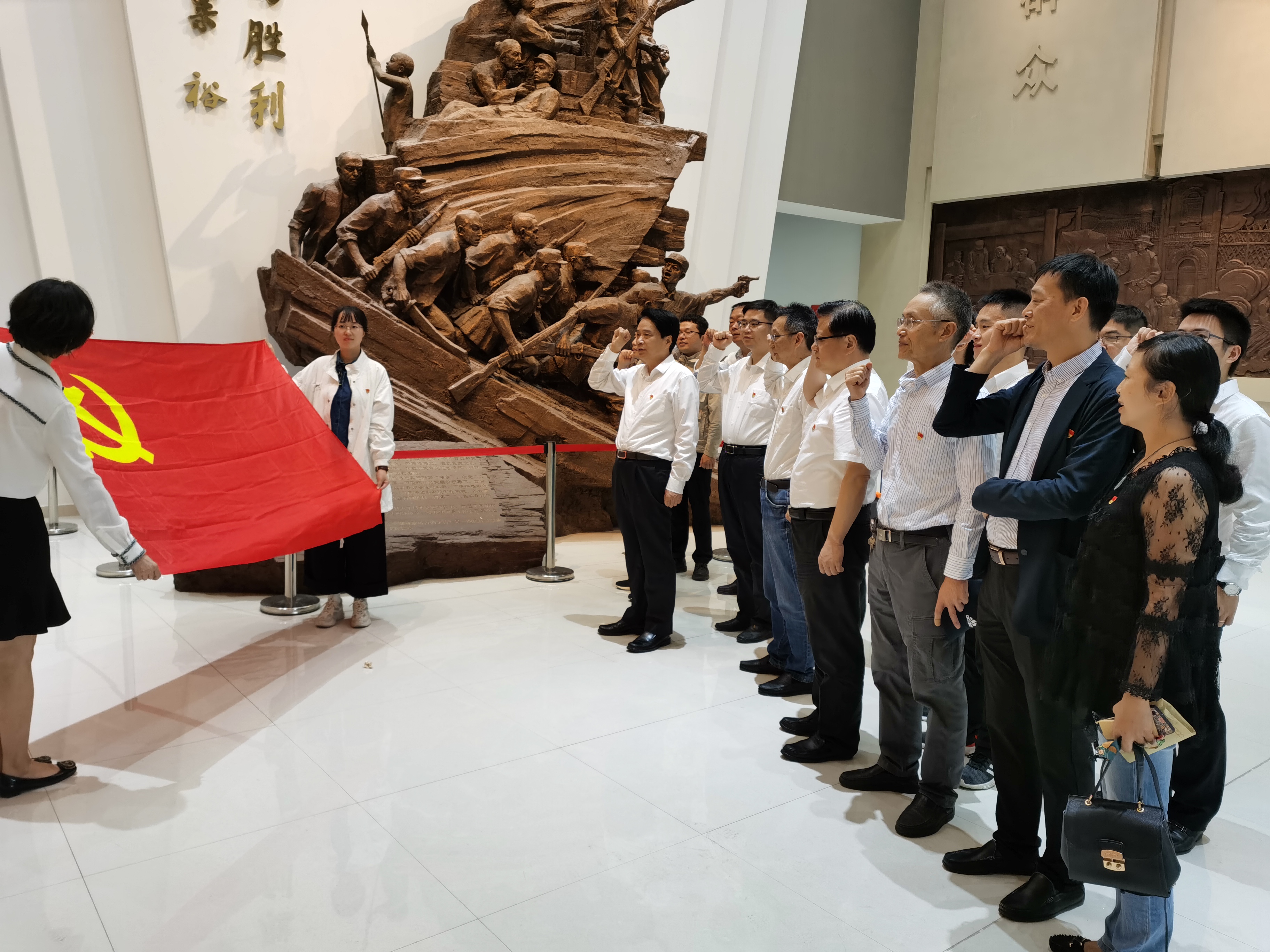 參觀過程中,全體人員都懷著無比崇敬、無比敬仰的心情,仔細觀看了陳列館內的革命文物、先輩遺物、先烈生平、歷史照片和戰爭實物等。這些珍貴的革命遺物和大量的歷史資料,向人們真實展現了在那段艱苦的革命歲月里,我們的革命先輩在中國共產黨的堅強領導下,為了抵御侵略奮勇反抗、為了民族獨立浴血奮戰、為了人民解放頑強斗爭。讓全體人員都深切感受到中國共產黨人為追求理想真理、謀求人民幸福所作出的巨大犧牲和建立的不朽功勛。參觀活動結束前,集團黨委書記、董事長杜永朝同志帶領全體人員,面對鮮紅的黨旗,重溫入黨誓詞。