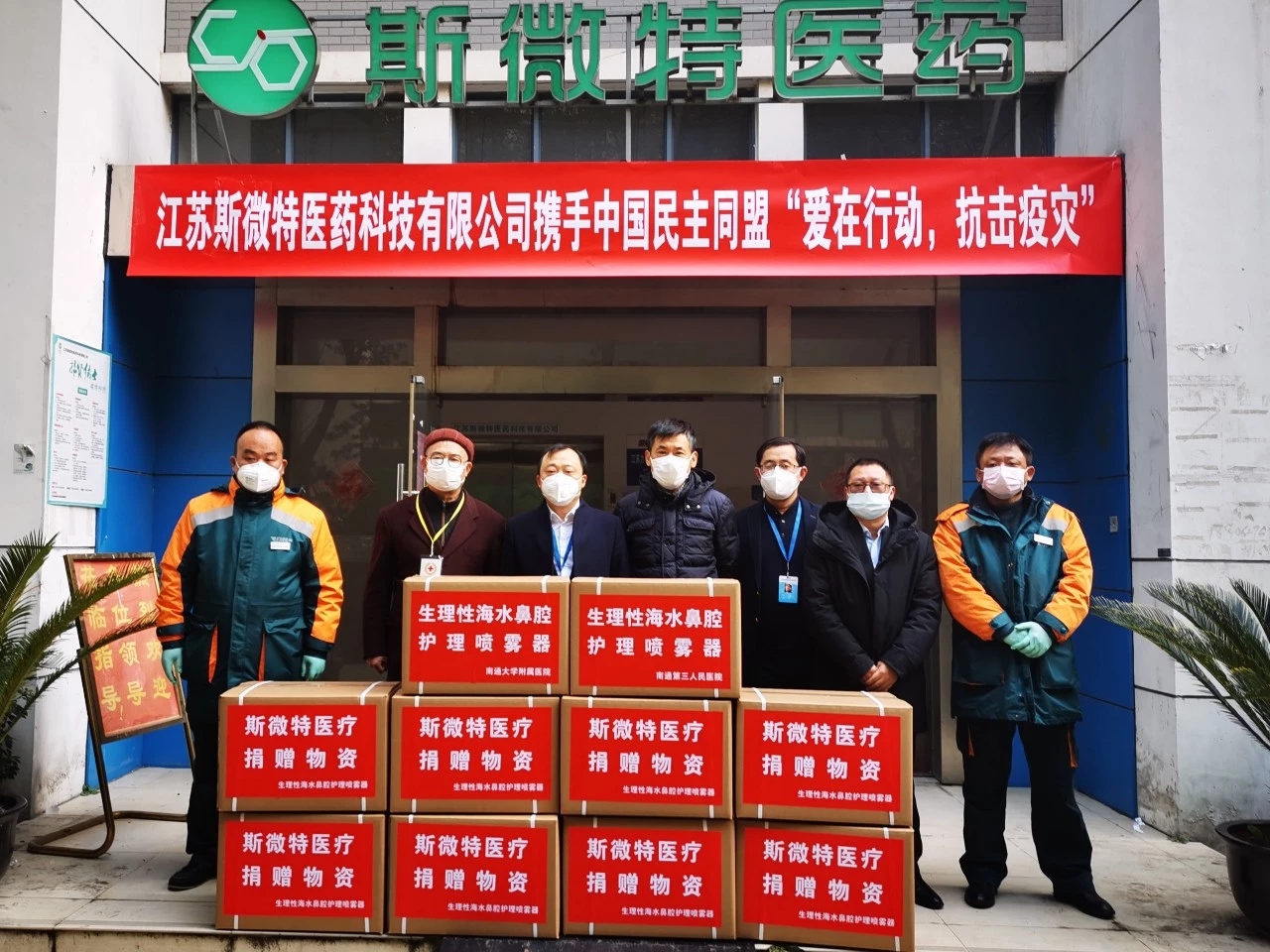 江蘇華存電子科技有限公司創始團隊大部分來自臺灣,公司充分利用渠道優勢,經過多方面聯系溝通,向南通市及通州區捐贈醫用C級醫療連衣防護衣1萬余件,2月12日500件防護服捐贈給通州區,其中400件通過通州區紅十字會轉交通州區政府、100件直接捐贈給疫區通州區金新街道。另1.2萬件防護服將捐贈給南通市區,預計2月13日起開始分批運達南通。 江蘇斯微特醫藥科技有限公司產品是一家醫療器械及藥物研發生產企業,為抗擊疫災,斯微特與中央民盟扶貧辦達成共識,為收治新冠病毒患者的相關定點醫院捐贈價值43萬元的消毒鹽水,首批10箱1200瓶“生理性海水鼻腔護理器”物資已送往市相關醫院,后續4800瓶“生理性海水鼻腔護理器”物資將發往武漢、孝感等重點疫區。