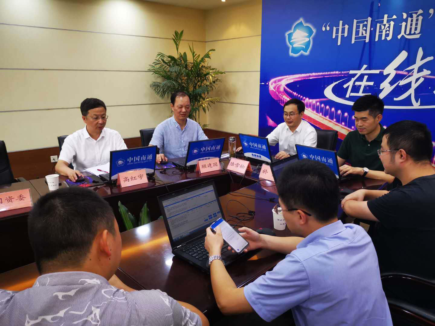 8月20日下午,“中國南通”政府網站在南通市政府409會議室就國企改革發展情況等群眾關注度較高的熱點話題進行在線訪談,國資委主任陸雪松,沿海集團董事長高紅宇,產控集團副董事長、副總經理、投資公司董事長顧建國等接受了訪談。