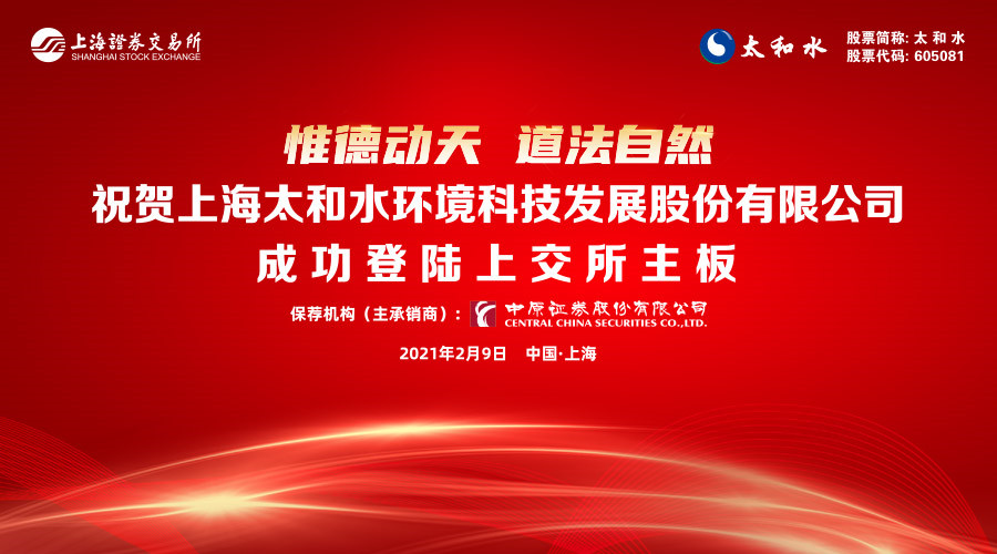 2021年2月9日,南通市產業(yè)投資母基金發(fā)起參股的南通國信君安創(chuàng)投基金投資企業(yè)上海太和水環(huán)境科技發(fā)展股份有限公司(以下簡稱“太和水”)在上海證券交易所掛牌上市交易,成功登陸A股主板(股票代碼605081)。本次公開發(fā)行1953萬股,發(fā)行價43.30元/股,新募集資金約8.45億元,發(fā)行后總股本7810.14萬股。