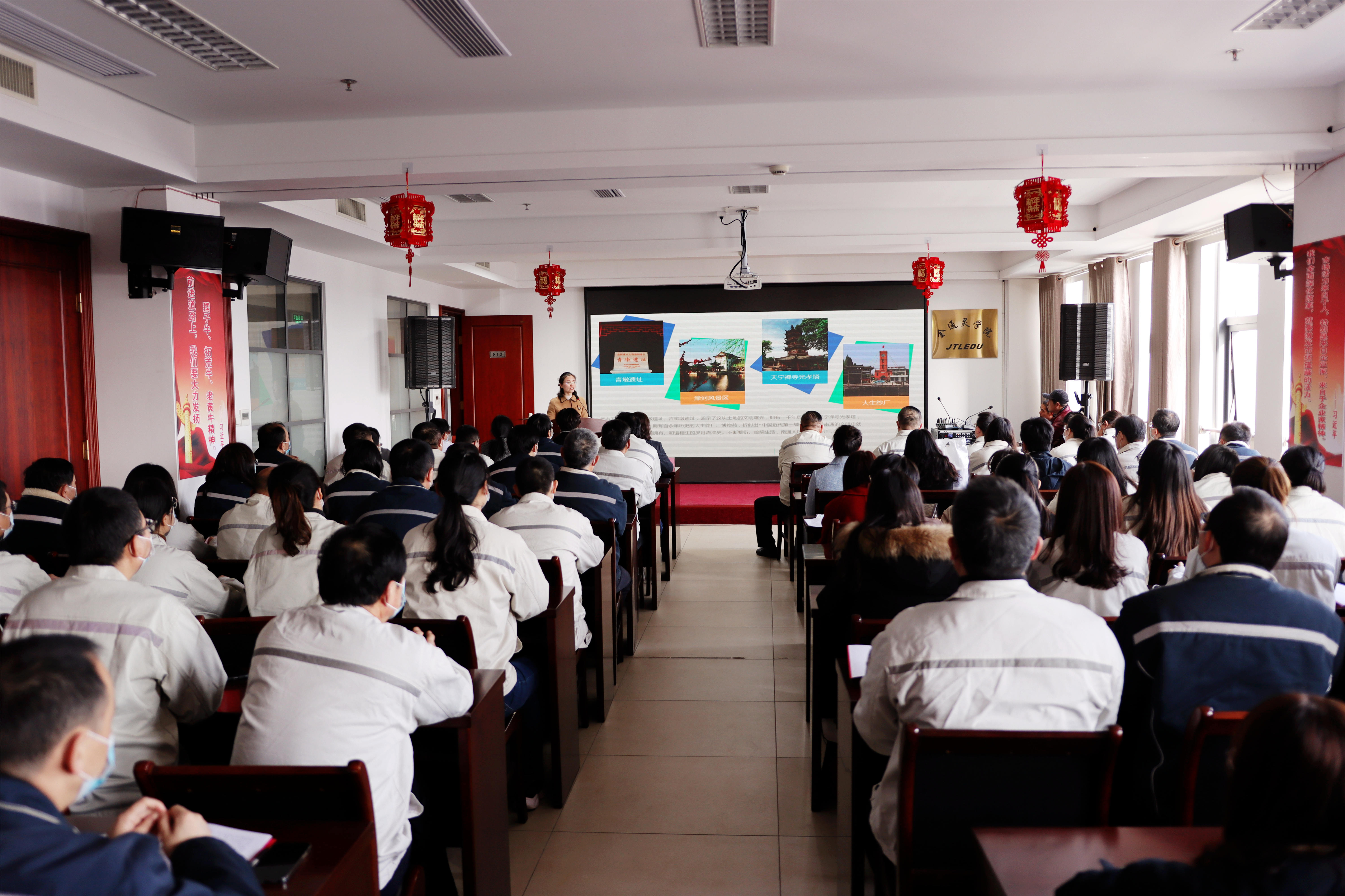 紅色的燈籠帶著節(jié)日的余溫與暖心的“習(xí)語(yǔ)金句”一起裝點(diǎn)著會(huì)場(chǎng)的氛圍,臺(tái)上宣講員循循善誘,為金通靈職工帶來(lái)滿滿理論“干貨”;臺(tái)下聽(tīng)眾聚精會(huì)神,給宣講員們送去陣陣掌聲。2月23日下午,崇川區(qū)“學(xué)習(xí)貫徹習(xí)近平總書(shū)記視察江蘇重要講話精神”宣講團(tuán)首場(chǎng)宣講活動(dòng)在金通靈學(xué)院內(nèi)成功舉辦。