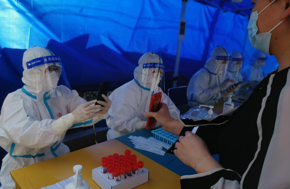 為確保疫情防控知識宣傳落實到位,國融公司綜合事務部主任袁莉,盡管身患糖尿病,仍主動承擔起了紡織大廈疫情防控的任務。線上,她利用微信朋友圈、微信群等陣地及時轉發疫情防控權威信息,大力推進防疫宣傳;線下,她連續值班值守,主動參與起鳳社區卡口執勤,服務三輪全員核酸檢測,為全力撐起疫情防控“安全傘”貢獻力量。 在疫情防控工作中,資產經營部主任楊凌燕夫婦更是以辛苦付出贏得了一致認可。她是支援起鳳社區的志愿者,身穿“大白”協助醫護人員進行全民核酸檢測;她是支援所在社區的急先鋒,維持秩序、引導群眾,盡心盡責。她的丈夫作為一名公務員也一起就地轉為志愿者,兢兢業業做著宣傳解釋疫情防控相關政策、服務全員核酸檢測等工作。楊凌燕說:“累是真的,但是能得到大家的認可和贊揚,值了!” 下沉到社區的干部職工化身“大白”成為了協助做好核酸檢測的標配。財務審計部副主任張煒第一次穿上全套“大白”支援起鳳社區核酸檢測后,就有了非常深刻的體會。4月12日下沉到所在社區后又一次穿起“大白”,四個多小時核酸檢測完,再回到家面對兩個孩子時,她表示“電量僅剩百分之一”。話語中,既有樂觀積極的心態,更有對工作負責的堅守和擔當。