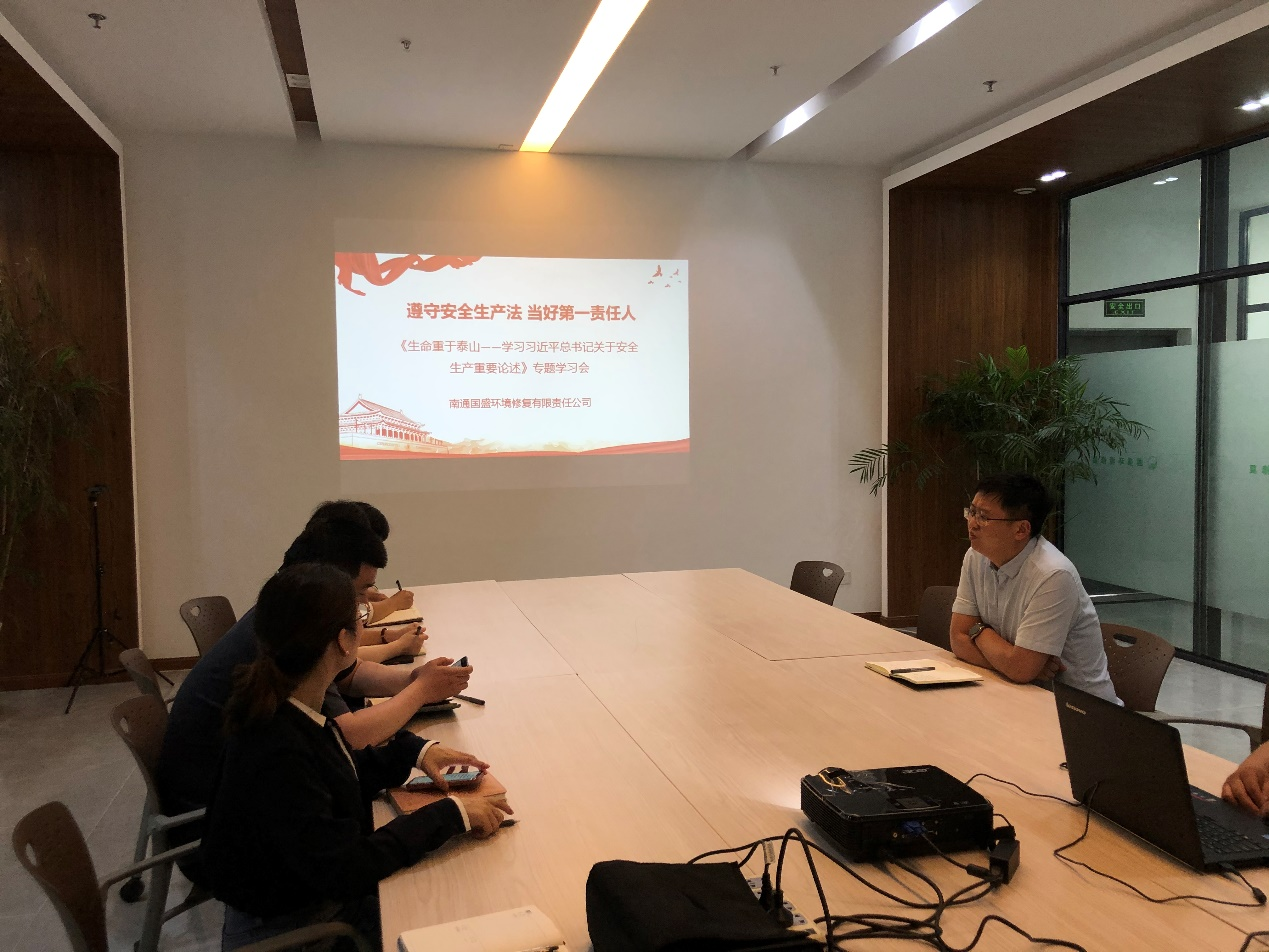 為進(jìn)一步加大全公司安全生產(chǎn)宣教力度,推動(dòng)落實(shí)企業(yè)安全主體責(zé)任,全面提高員工安全素質(zhì),6月13日下午,國(guó)盛環(huán)境在會(huì)議室開展“遵守安全生產(chǎn)法 當(dāng)好第一責(zé)任人”主題活動(dòng),組織全體員工集中學(xué)習(xí)《生命重于泰山——學(xué)習(xí)習(xí)近平總書記關(guān)于安全生產(chǎn)重要論述》電視專題片。