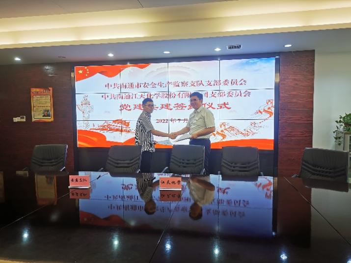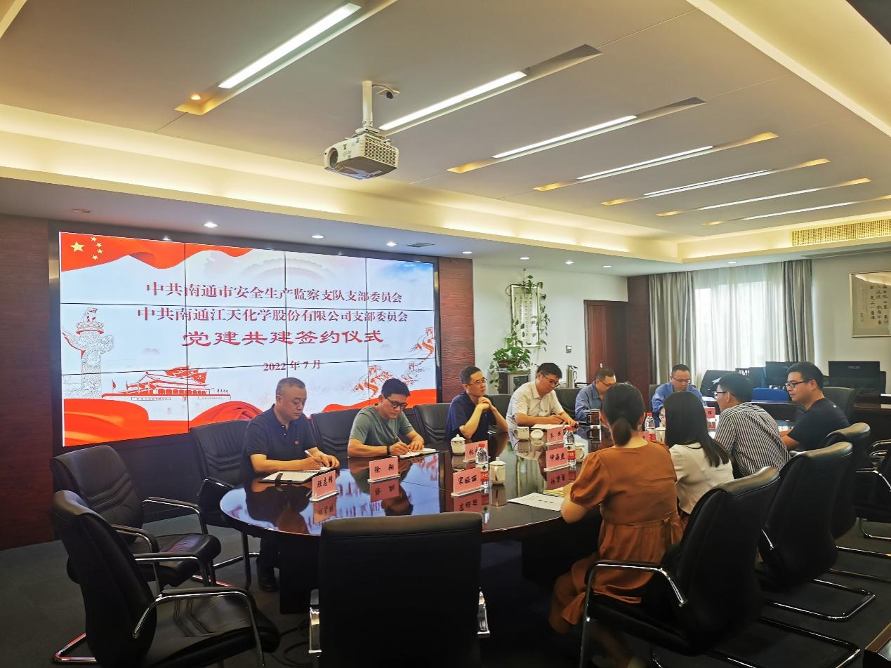 為認真貫徹落實習近平總書記關于安全生產方面的重要論述,深化“紅色引領 綠色智造”黨建品牌建設,深入推進融合黨建實踐,提升安全生產管理工作成效。7月份,江天化學黨支部與南通市安全生產監察支隊黨支部開展了黨建共建簽約儀式,進一步加深合作交流,創新黨建結對共建形式。