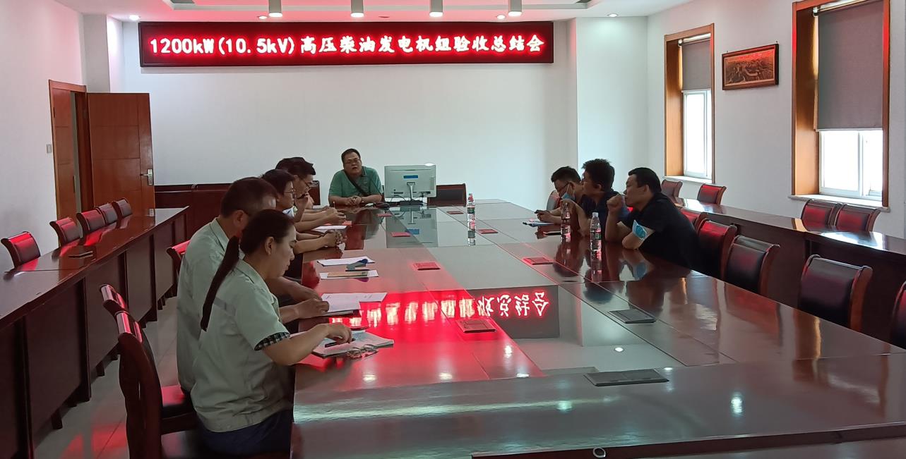 近日,泰州鋒陵特種電站裝備有限公司組織召開了1200kW(10.5kV)高壓柴油發電機組驗收總結會。參加會議的有中鐵十二局集團有限公司、中鐵第六勘察設計院集團有限公司、國機中興工程咨詢有限公司等領導和專家,以及鋒陵特電銷售、技術、生產、質檢等部門主管及項目負責人。驗收專家組組長中鐵第六勘察設計院集團有限公司李浩高工主持會議。