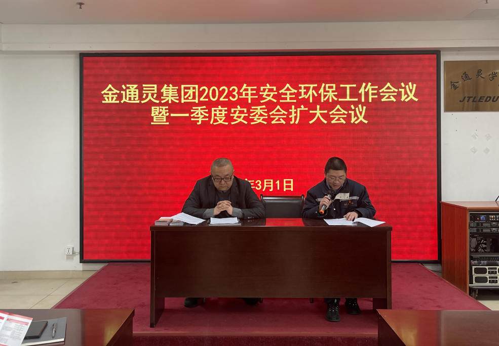 2023年3月1日,金通靈科技集團股份有限公司組織召開了2023年集團安全環保工作會議暨一季度安委會擴大會議。 集團公司黨委書記、總經理季偉,集團公司常務副總經理申志剛出席會議,集團安委會及中層助理以上管理人員、分子公司管理人員、全體專職安管人員參加了會議。會議由集團副總經理季維東主持。 集團公司安全管理部部長沈毅傳達了全省安全生產電視電話會議暨省安委會全體(擴大)會議精神以及近期上級相關文件要求和有關安全生產的最新指示精神。