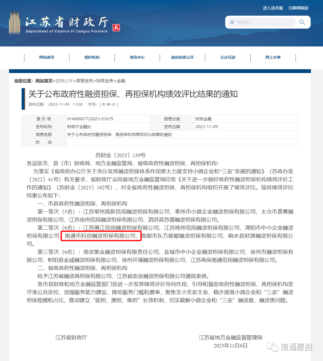 科創融資擔保躋身全省前十!江蘇省政府性融資擔保機構績效評比結果出爐