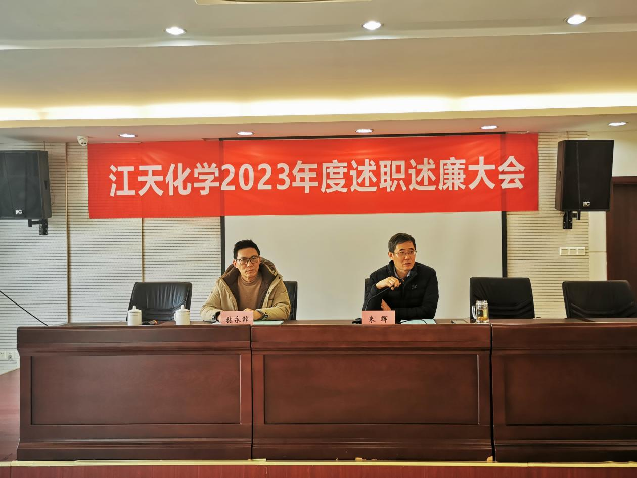 1月23日,江天化學組織召開中層干部年度述職述廉暨民主評議會議。公司董事長、總經理朱輝出席會議,會議由公司黨支部書記、副總經理張永鋒主持。